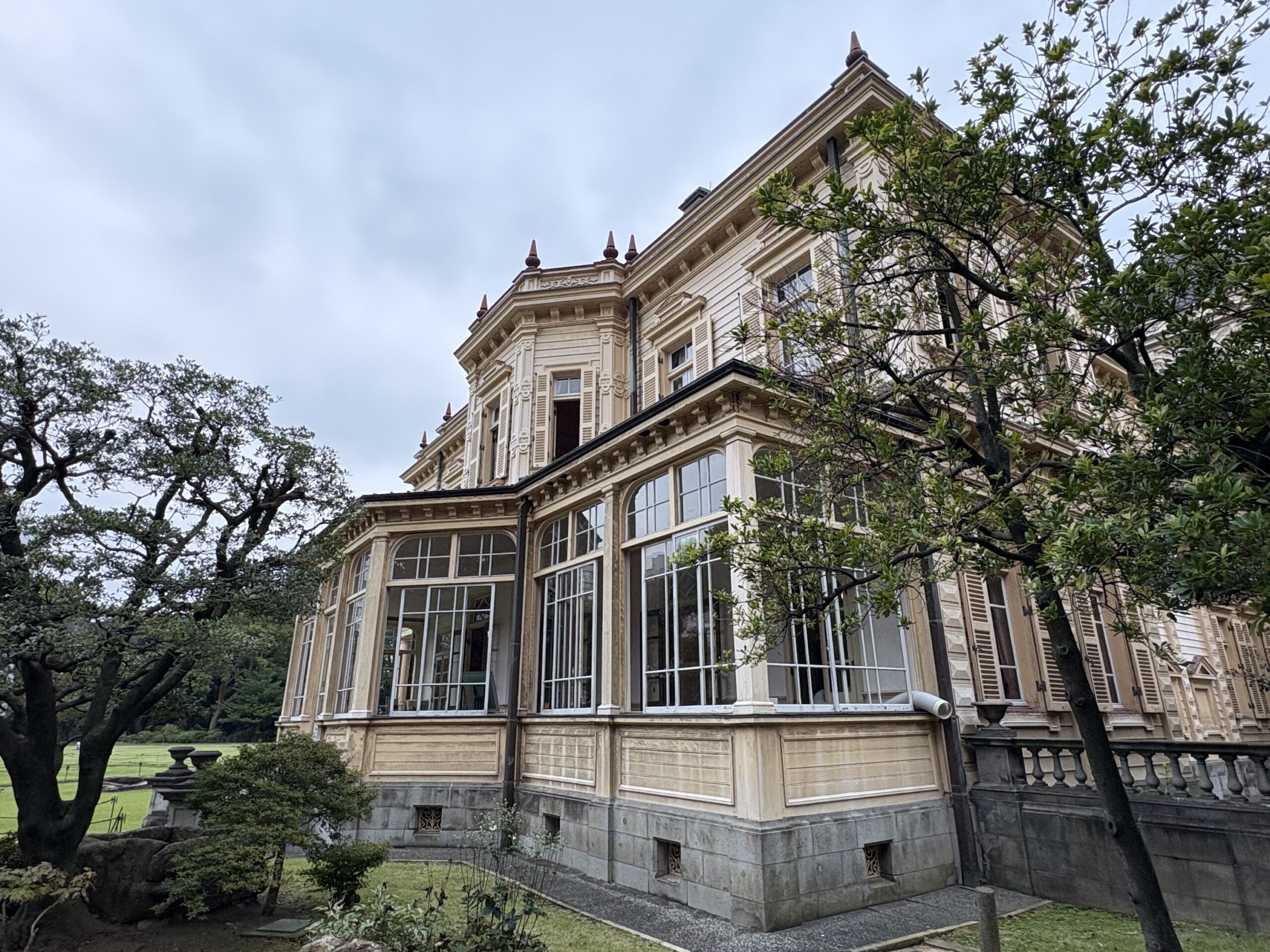 After struggling to find somewhere for lunch, we found a place doing excellent sushi and then walked through a neighbourhood of love hotels and dodgy bars to the oddity that is the Kyu-Iwasaki-tei Gardens. Situated amid the grounds is a large European-style Victorian villa, built for the family that founded the Japanese industrial giant Mitsubishi and which looks completely out of place in modern Tokyo. The house is certainly grand from the outside but a bit of a shell inside, lacking any furniture, but we toured the rooms, noted the architectural flourishes and read the information boards. The latter were, as one would expect at a Japanese attraction, vastly outnumbered by the signage that stipulated how we should behave and the large number of activities that were forbidden, such as touching things, taking photos, breathing… Airy verandahs looked out over the simple garden to the city beyond. The villa, which was mainly used as a guesthouse by the family’s visitors, is linked to a Japanese residence that the family much preferred to live in back in the day. Now much reduced in size, because parts of the site were sold off to developers over the years, it offered the traditional set of rooms consisting of tatami matting and paper walls.
