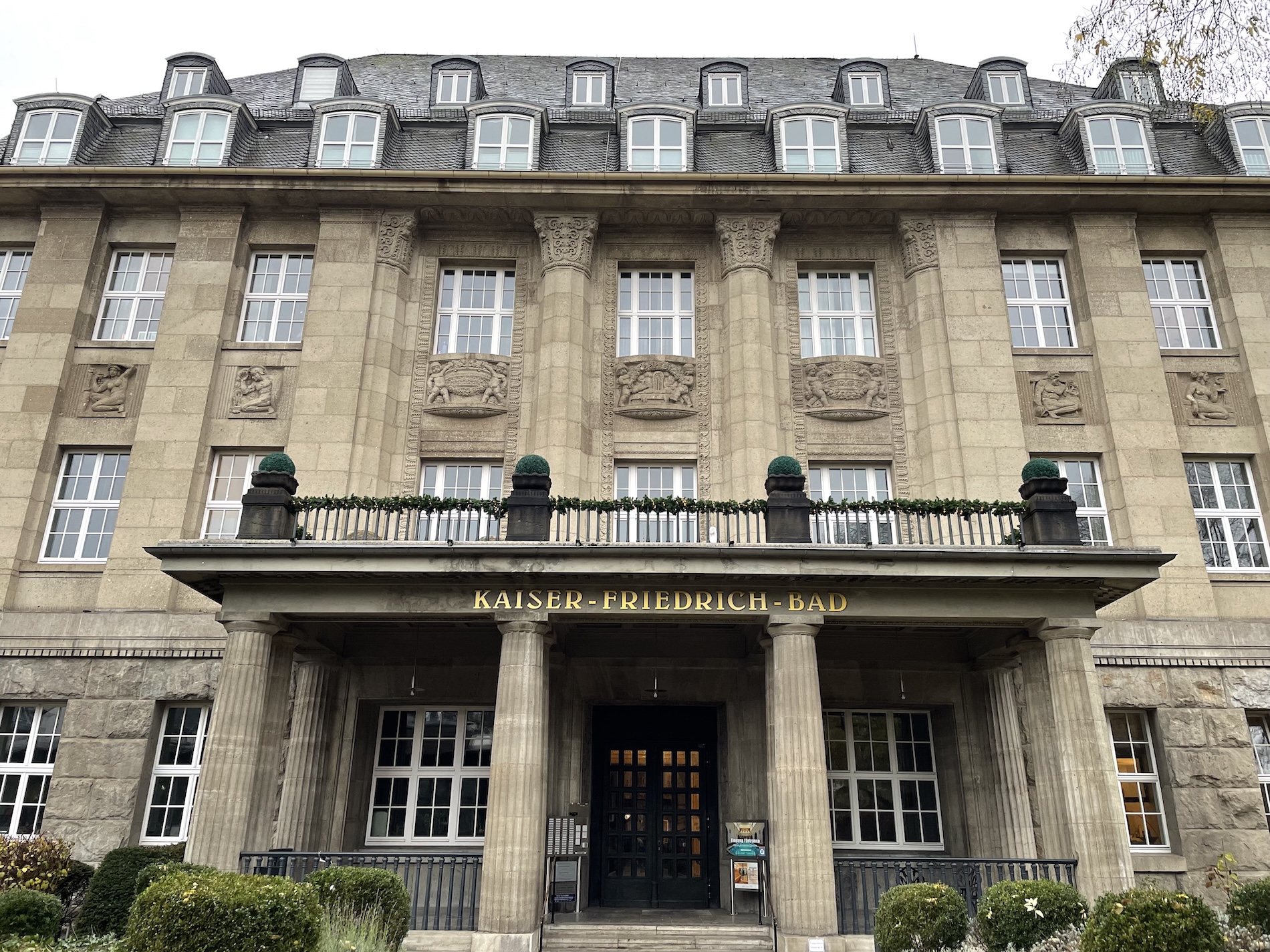 On a cold December day, while many were drawn to the market stalls clustered around the towering red-brick Marktkirche and the more modest Landtag, some of us were keeping warm in the Kaiser Friedrich Therme. Fed by one of the many steamy springs that bubble up in the hills surrounding the city, it’s a richly decorated, early 20th century spa that was designed in part to reflect the confidence and wealth of the city. And in that it succeeds. There are friezes and ceramics, elaborate tiles and colourful marble suggesting luxury, refinement and even that Roman past.