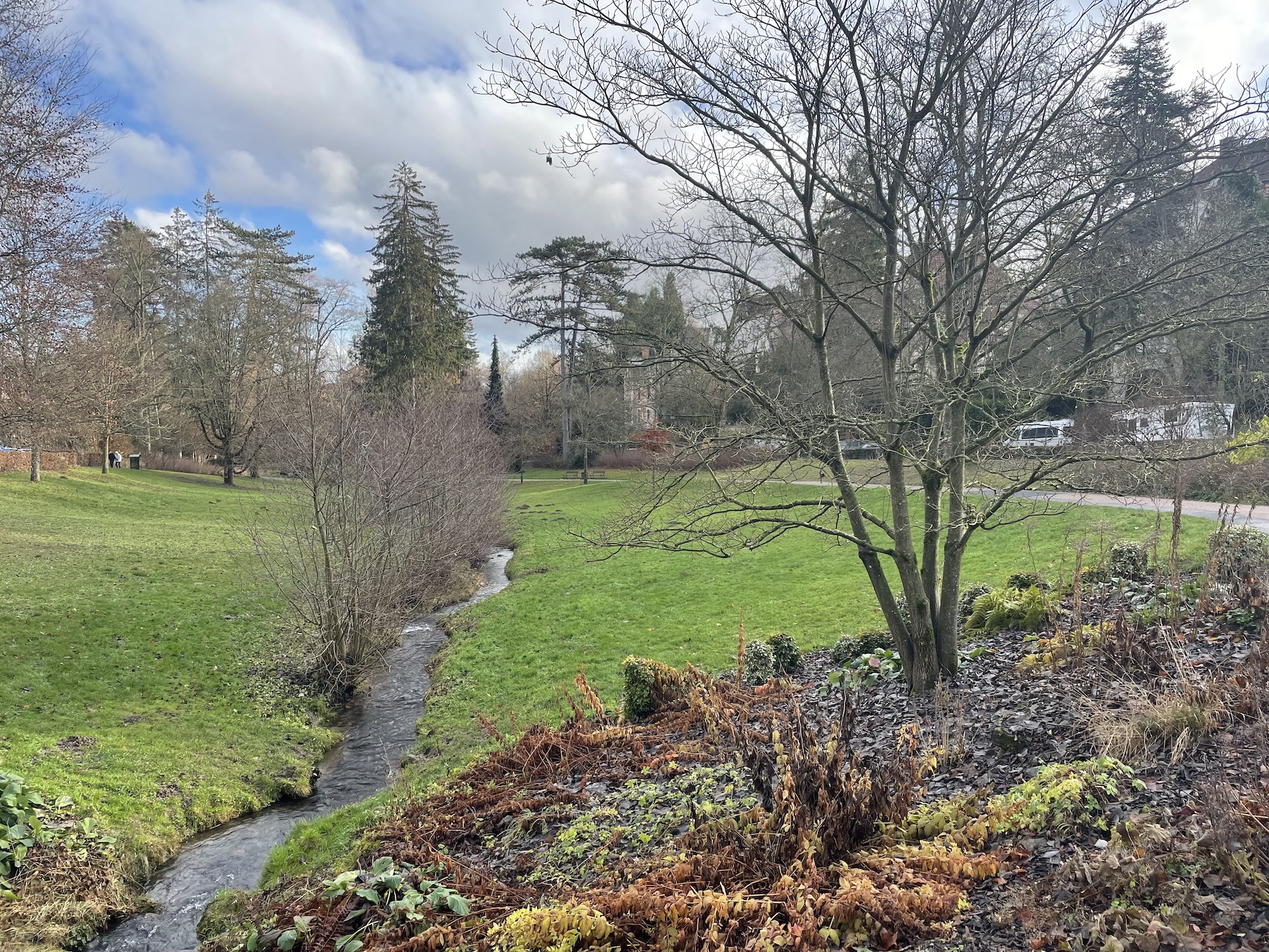 Elsewhere in the city is the Kochbrunnen fountain on Kranzplatz, where more hot, mineral-rich and sulphurous waters bubble to the surface. It’s probably the presence of the spring that led to the area around it becoming one of the most glamorous of Wiesbaden’s districts, home to fancy hotels and grand houses. We ended up there after a walk in the northern suburbs to the historic Nerobergbahn funicular railway, which carries visitors into the hills above the city in the summer months. It’s closed during the winter but the colourful Russian Orthodox Church was visible easily in the woods above us as we walked down through the Nerotal Park, laid out in the late 19th century. Attractively landscaped, the Schwarzbach stream runs through it and there are various memorials, including one to Bismarck.