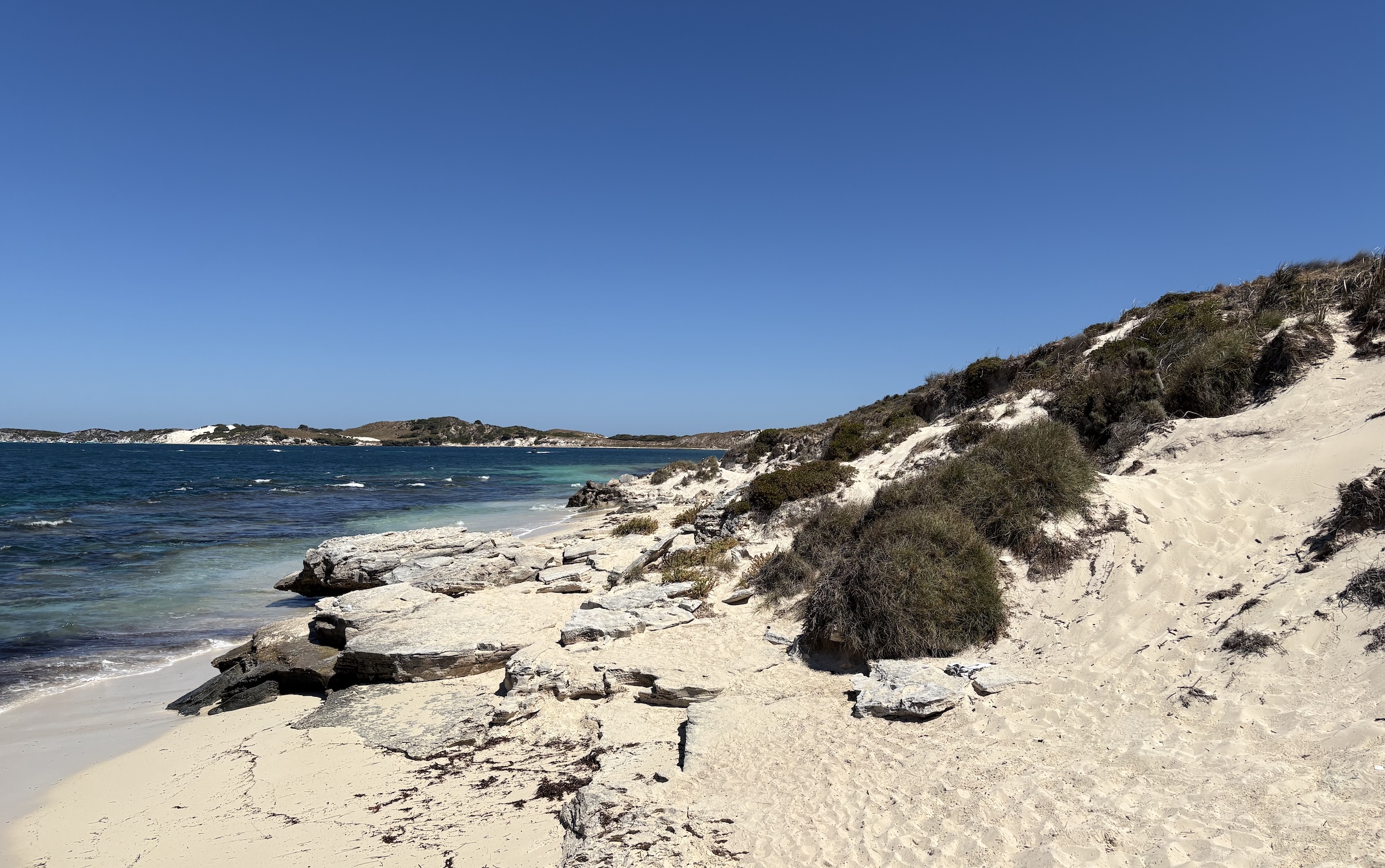 Rottnest is a low-lying island, just 19 square kilometres, but with a busy little harbour and a cluster of buildings in the main settlement at Thomson Bay. We collected our bikes from the jetty and headed off on a cycle around the island.